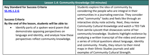 To the left is an image of an example from the Lesson Overview Guide for Teachers that I created. The simple design showcases the key state standards addressed in the lesson and provides a brief overview of the assessment. Also included is success criteria for the assessment.